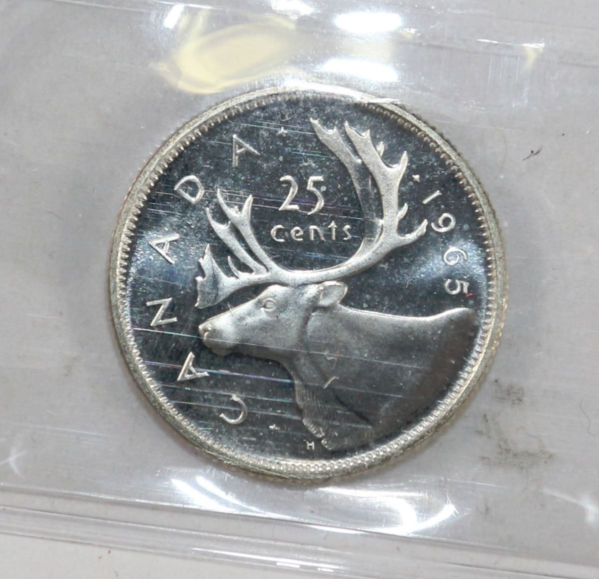 1965 CANADIAN SILVER 25 CENTS ICCS GRADED PL-65 CAMEO