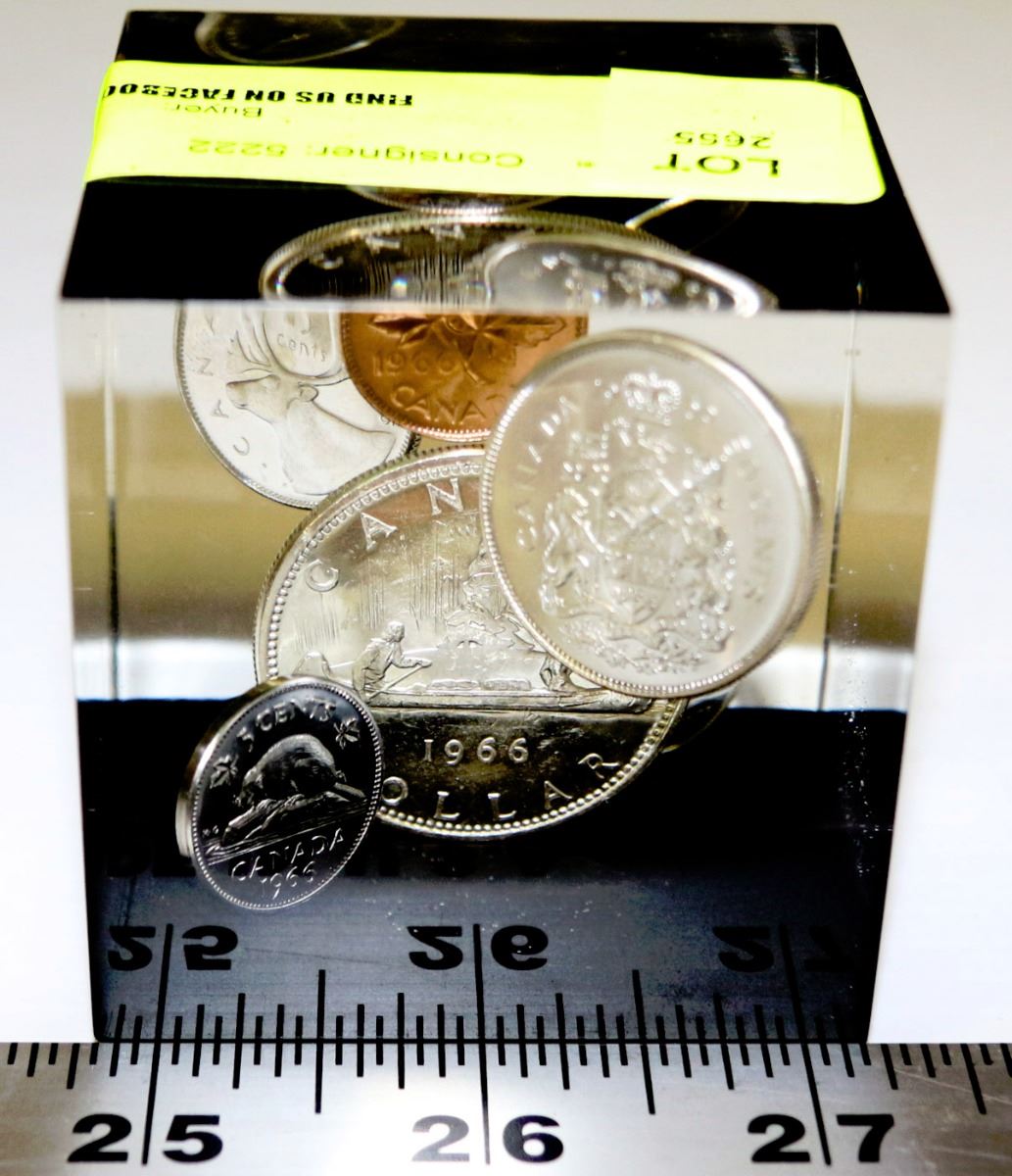 1966 CANADA COIN SET IN ACRYLIC LUCITE CUBE SHAPE