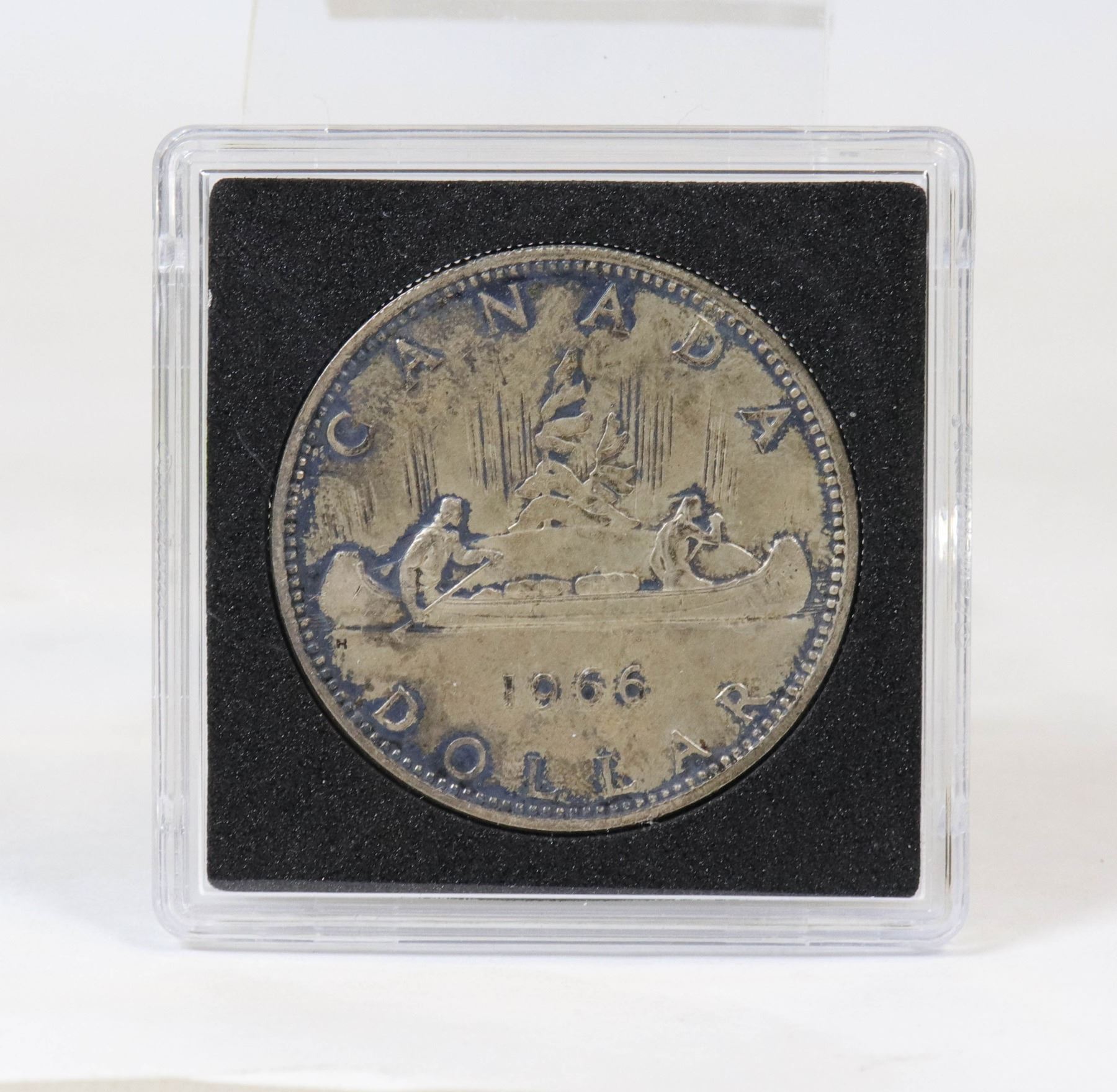 LAST CIRCULATION VOYAGEUR SILVER DOLLAR ISSUED IN CANADA. LARGE BEADS VARIETY WITH NICE DARK TONING.
