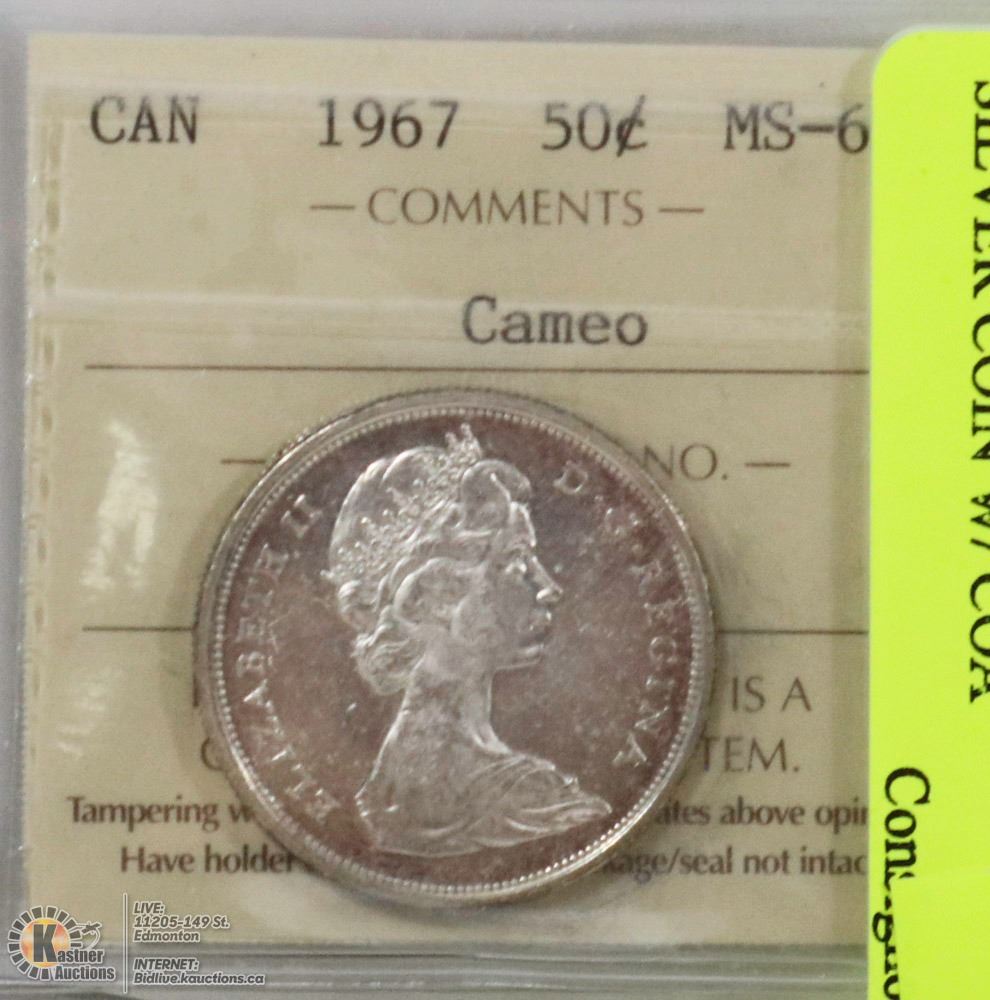 1967 CANADIAN 1 DOLLAR CAMEO SILVER COIN W/ COA