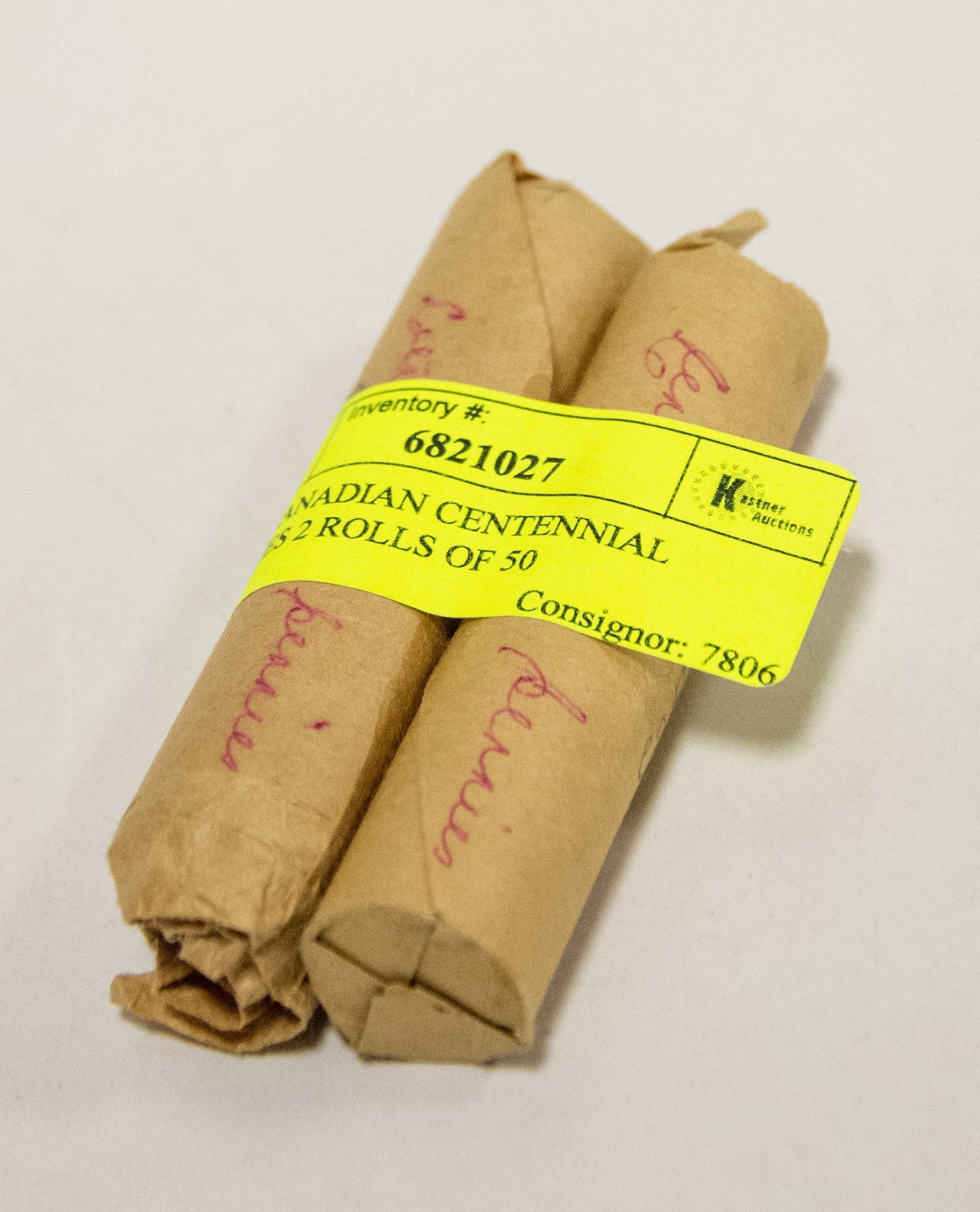 1967 CANADIAN CENTENNIAL PENNIES 2 ROLLS OF 50 EACH FEATURES ALEX COLVILLE DESIGN OF A ROCK DOVE