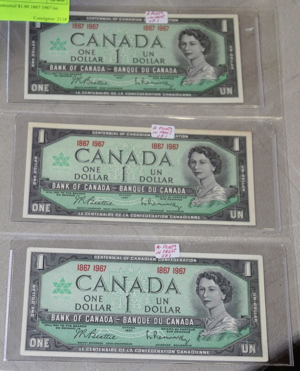 1967 CENTENNIAL 1 DOLLAR BANKNOTES X3