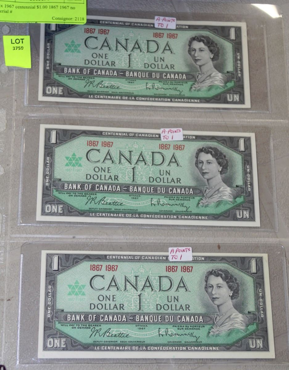 1967 CENTENNIAL 1 DOLLAR BANKNOTES X3