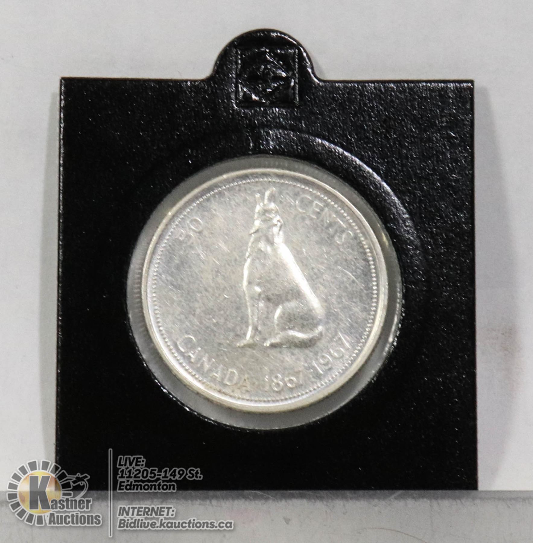 COMMEMORATIVE ISSUE WITH TIMBER WOLF DESIGN. ISSUED FOR CANADA'S CENTENNIAL POPULAR COIN
