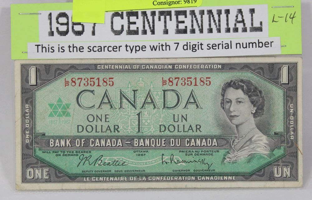 1967 CENTENNIAL WITH 7 DIGIT SERIAL NUMBER