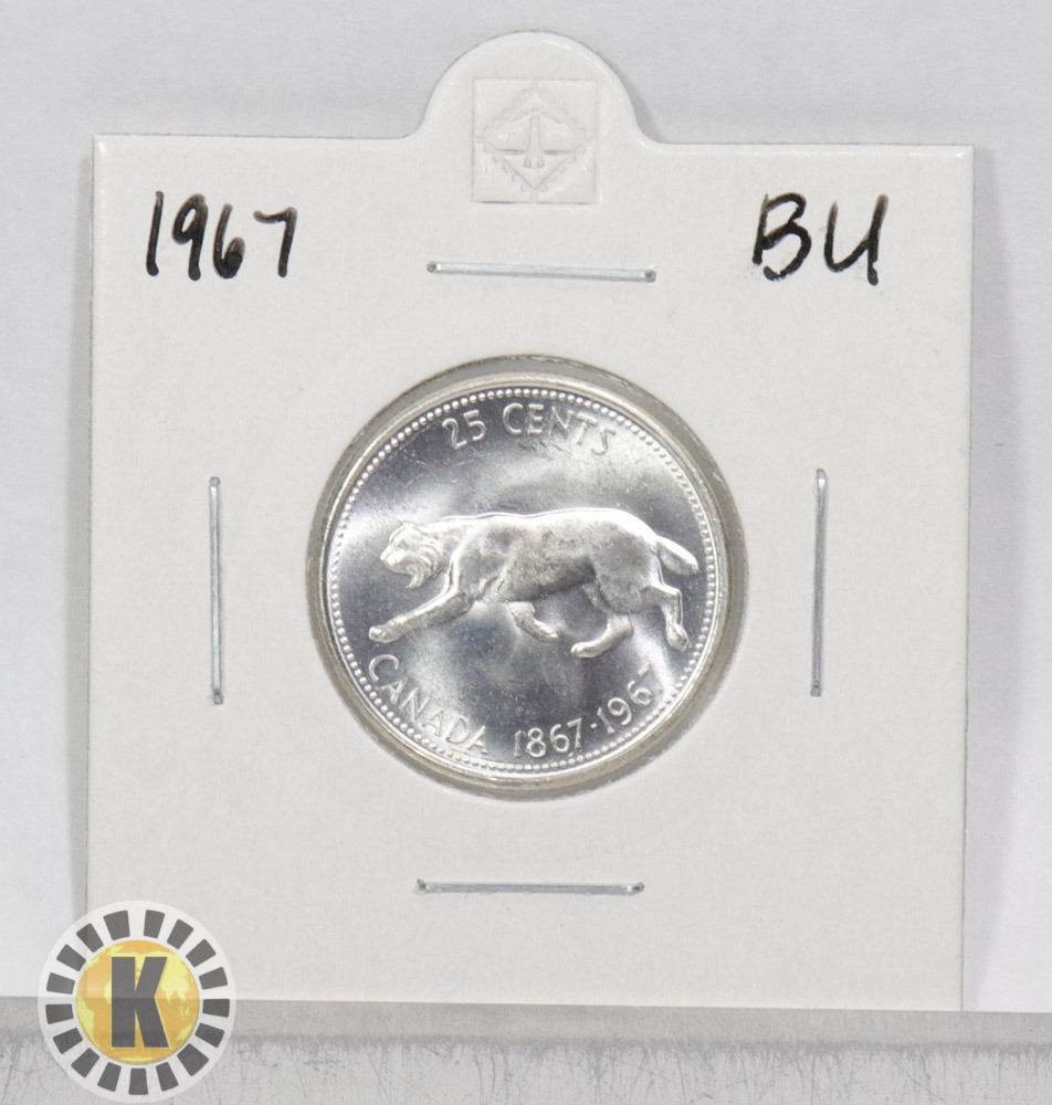 1967 SILVER CANADA BOBCAT 25c COIN, BU