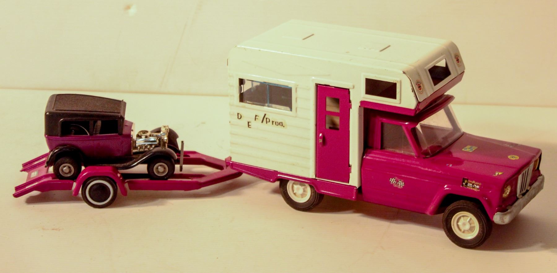 1968 TONKA JEEP CAMPER PURPLE/WHITE WITH TRAILER &