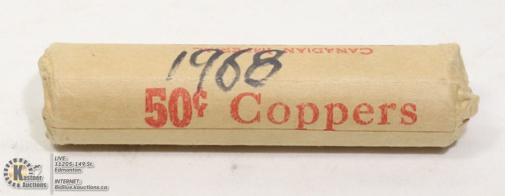 MINT CONDITION ROLL OF CANADA 1 CENT COINS FROM 1968. CANADIAN IMPERIAL BANK OF COMMERCE WRAP.