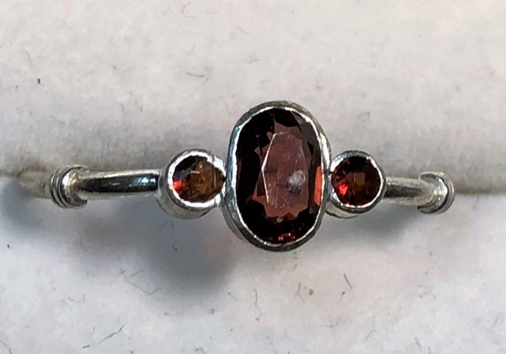 197 - JM37 - STERLING SILVER 3 GARNET RING (SIZE 7). JEWELRY