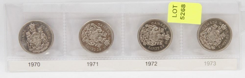 1970,1971,1972,1973 CANADIAN 50 CENT PIECES