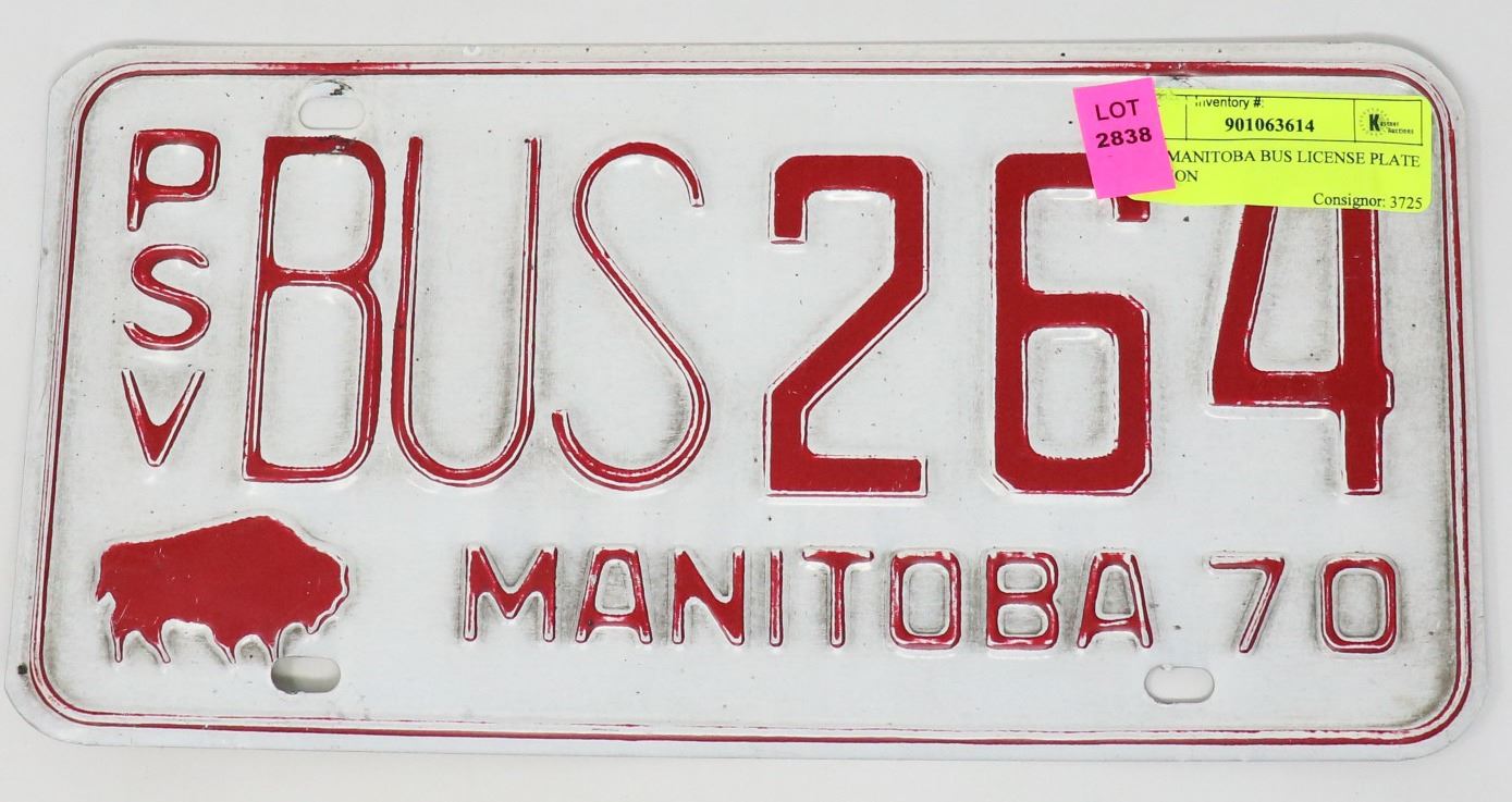 1970 MANITOBA BUS LICENSE PLATE W BISON