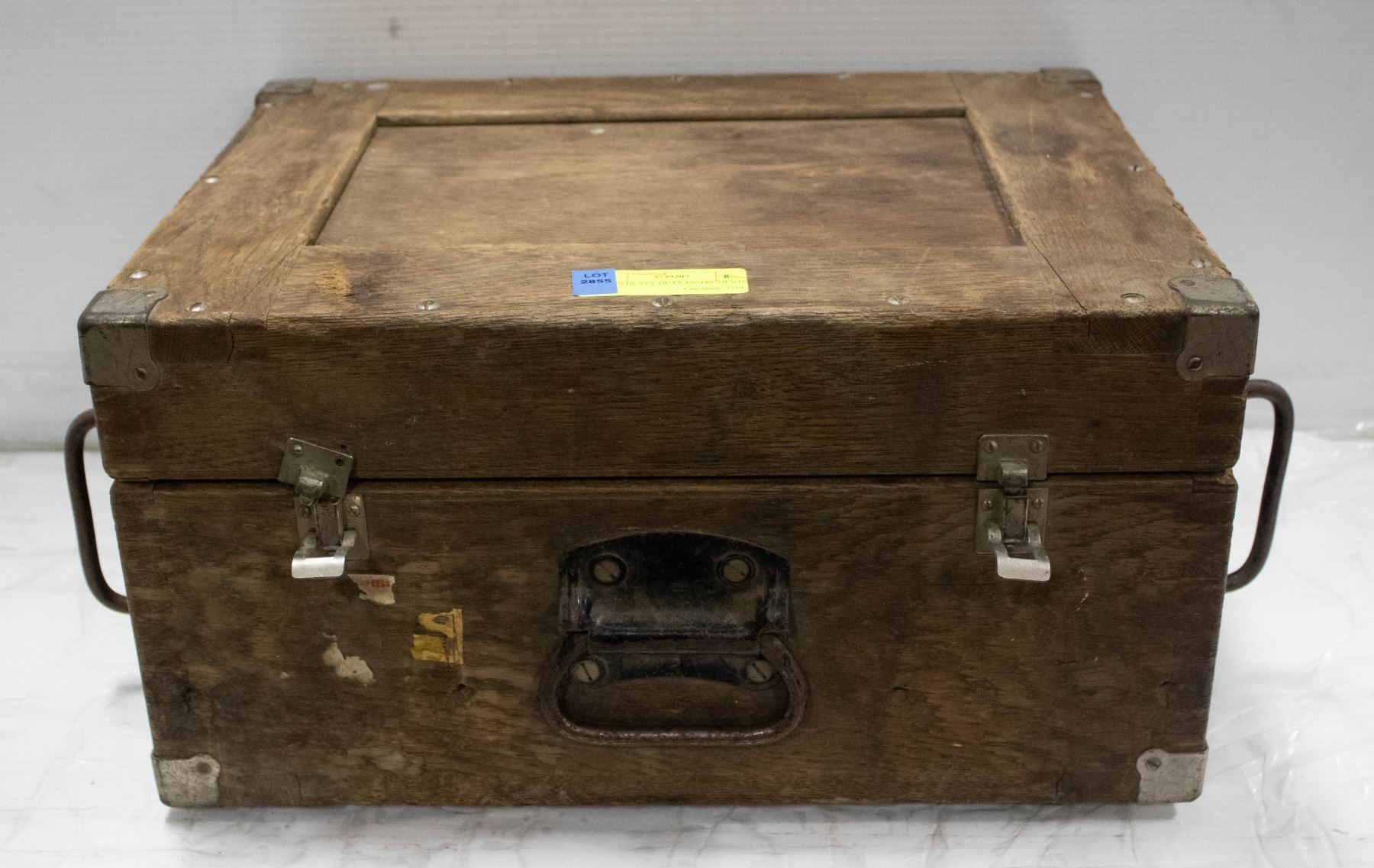 SOLID WOOD, HEAVY METAL HANDLES ON SIDES, 17-1/2" W, 9" D, 13-1/2" L **ALL ITEMS MUST BE REMOVED BY 5PM SATURDAY, DECEMBER 16TH 2023. ALL REMAINING ITEMS WILL BE SUBJECT TO A $6.00 PER DAY STORAGE CHARGE. ANY ITEMS REMAINING AFTER TUESDAY, JANUARY 2ND 2023 WILL BE CONSIDERED FORFEITED. NO REFUNDS WILL BE ISSUED FOR FORFEITED ITEMS. TO SCHEDULE A PICK UP APPOINTMENT CLICK HERE