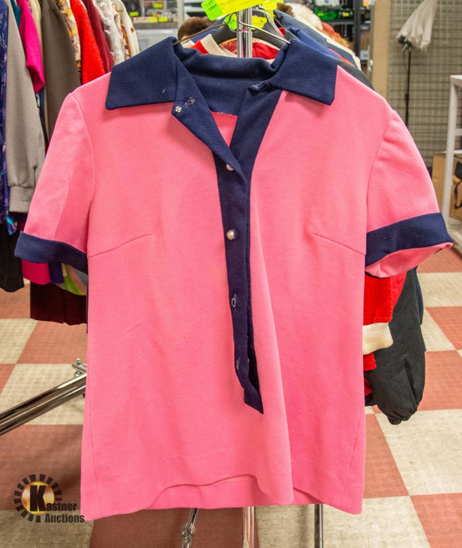 1970S PINK BLUE COLLAR SHIRT SIZE S/M