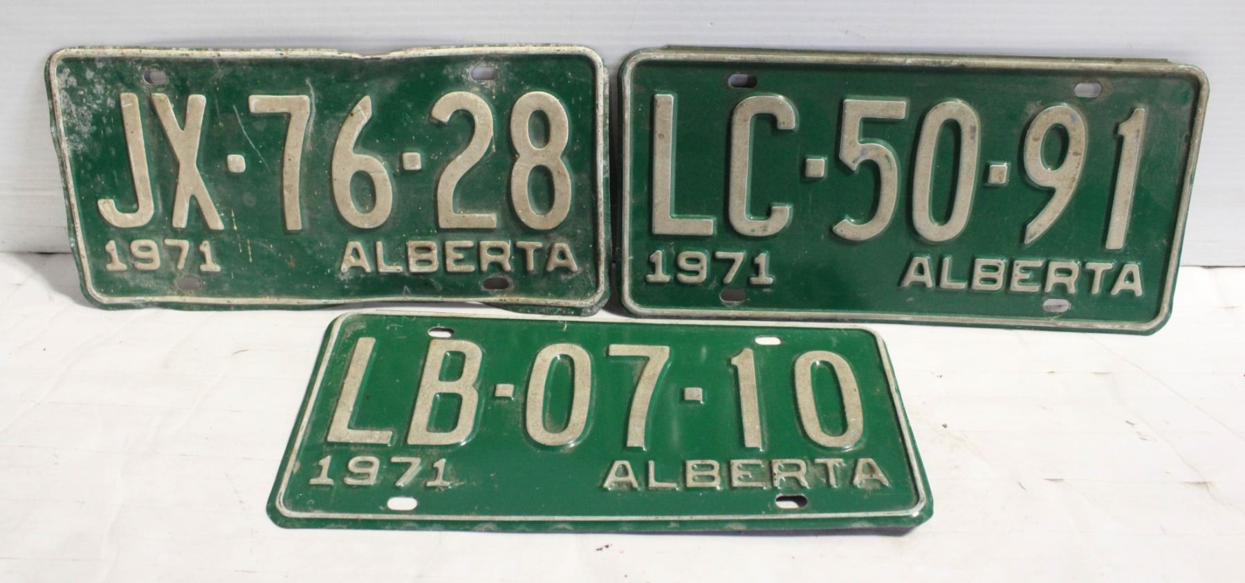 1971 SET OF 3 ALBERTA LICENSE PLATES
