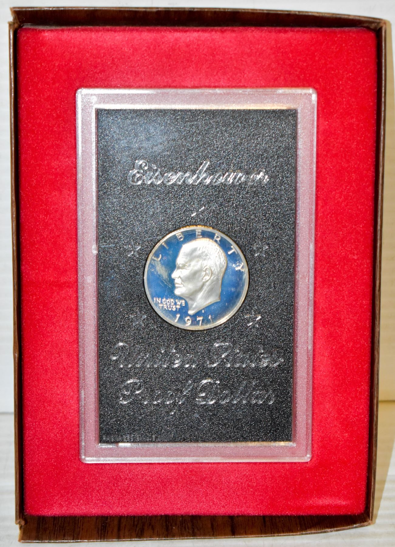 1971 SILVER USA EISENHOWER PROOF $1 COIN IN CASE