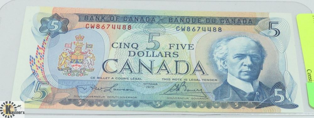 1972 $5 CANADIAN BILL SERIAL #CW8674488