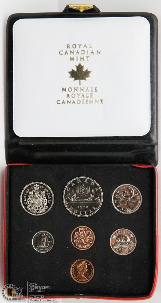 1972 SPECIMEN SET OF CANADIAN COINAGE IN RED CASE.