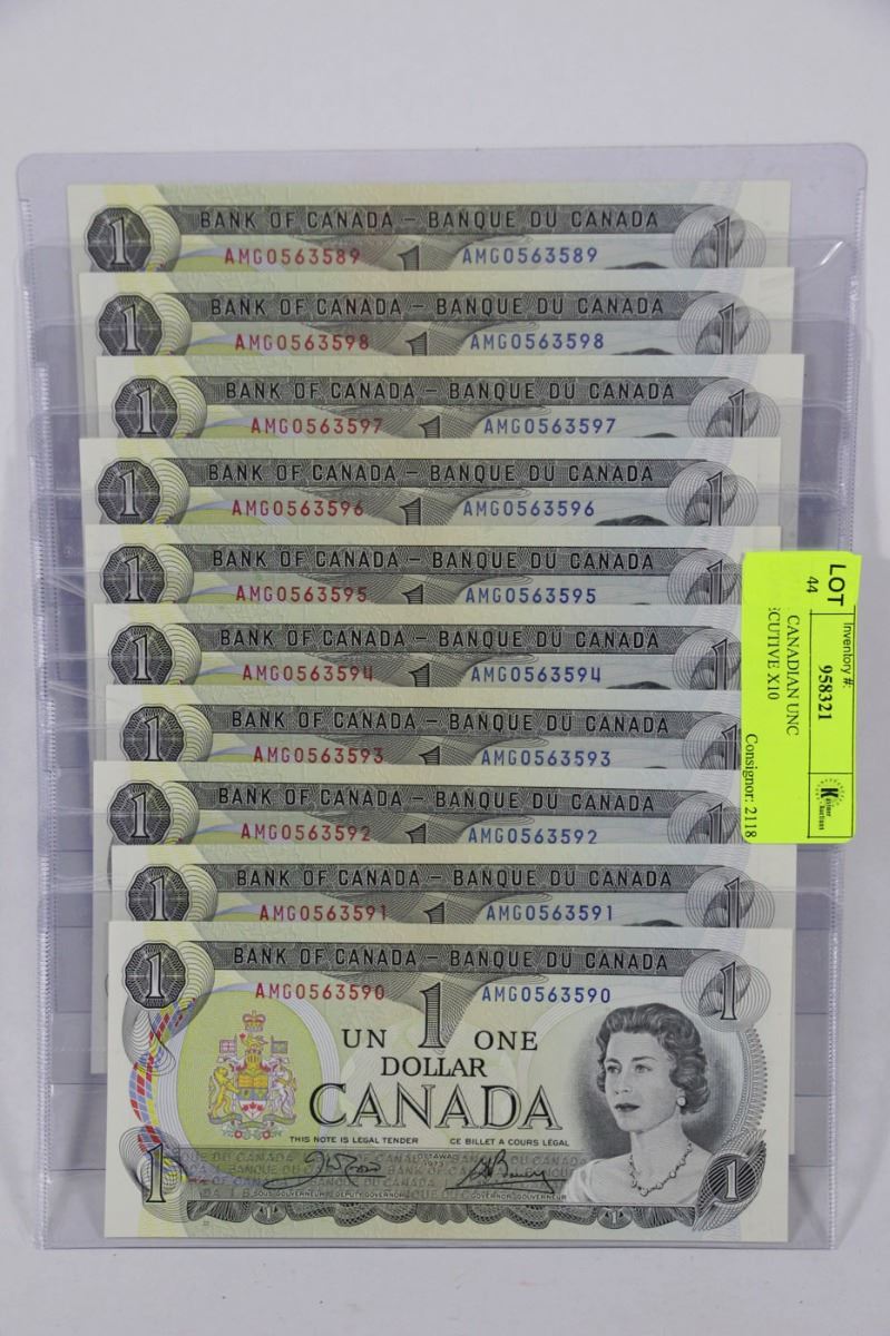 1973 $1 UNC CONSECUTIVE AMG0563589-598 ATTENTION THIS LOT IS SOLD 10 TIMES THE MONEY