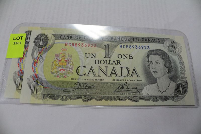 TWO UNCIRCULATED $1 BANKNOTES IN SEQUENCE BCB2218697-98. THIS LOT SOLD 2 TIMES THE MONEY.