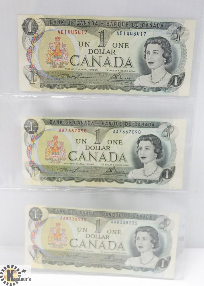1973 CANADIAN $1 DOLLAR BILLS- SET OF 3