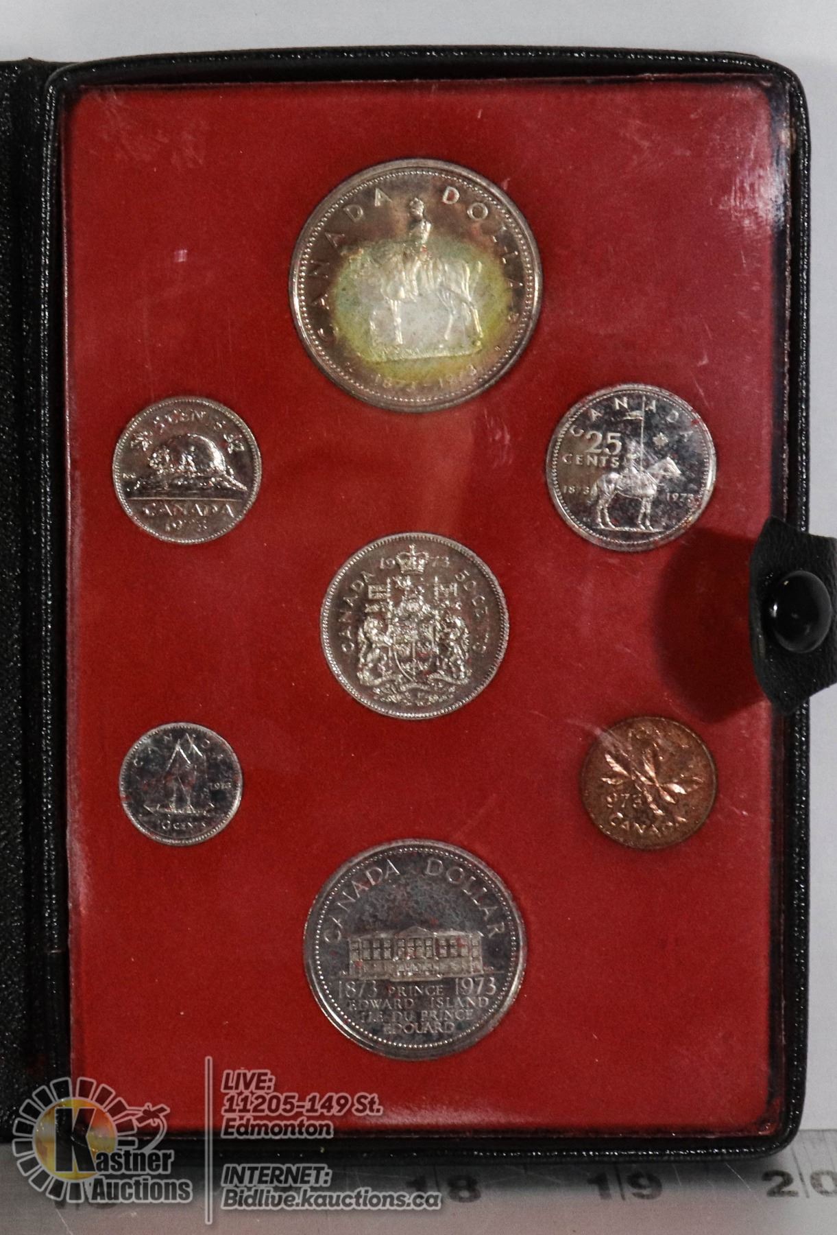 1973 DOUBLE STRUCK SET OF CANADIAN COINAGE. BOTH THE 25 CENT AND SILVER DOLLAR HONOR THE 100TH ANNIVERSARY OF THE RCMP.