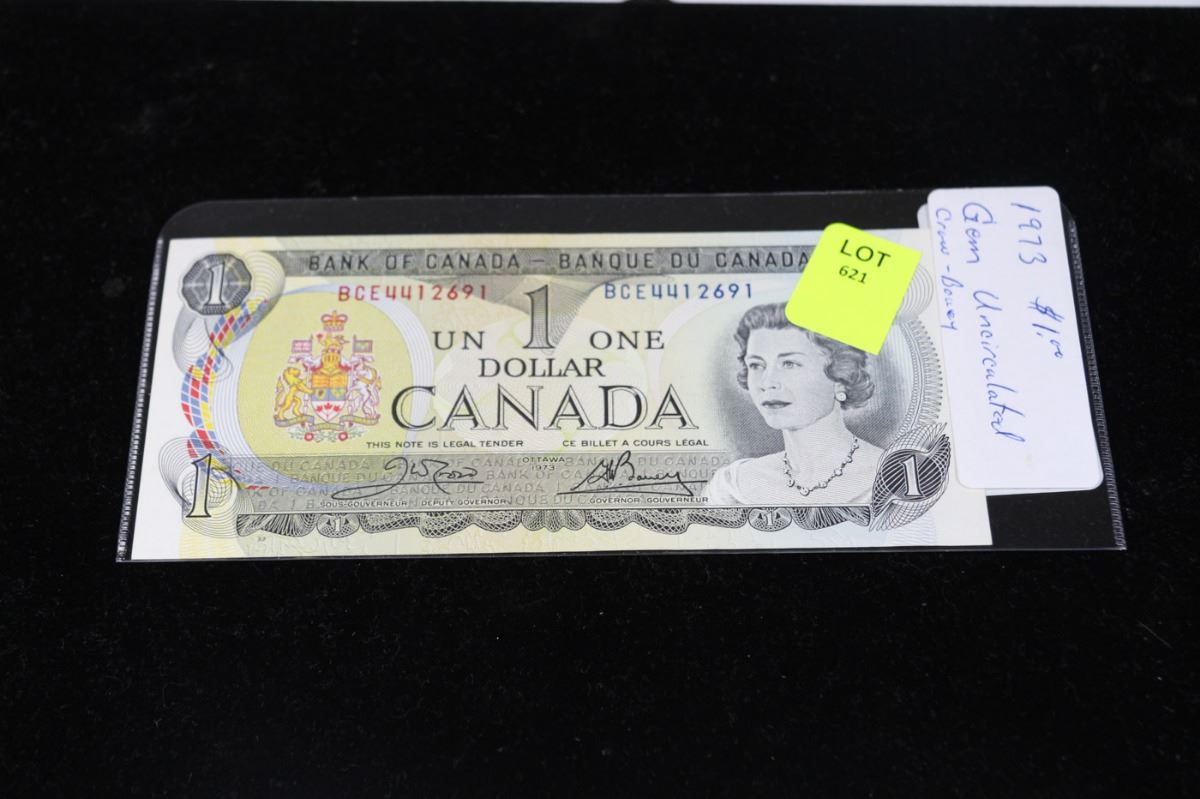 1973 GEM UNC 1 DOLLAR CANADIAN BANKNOTE
