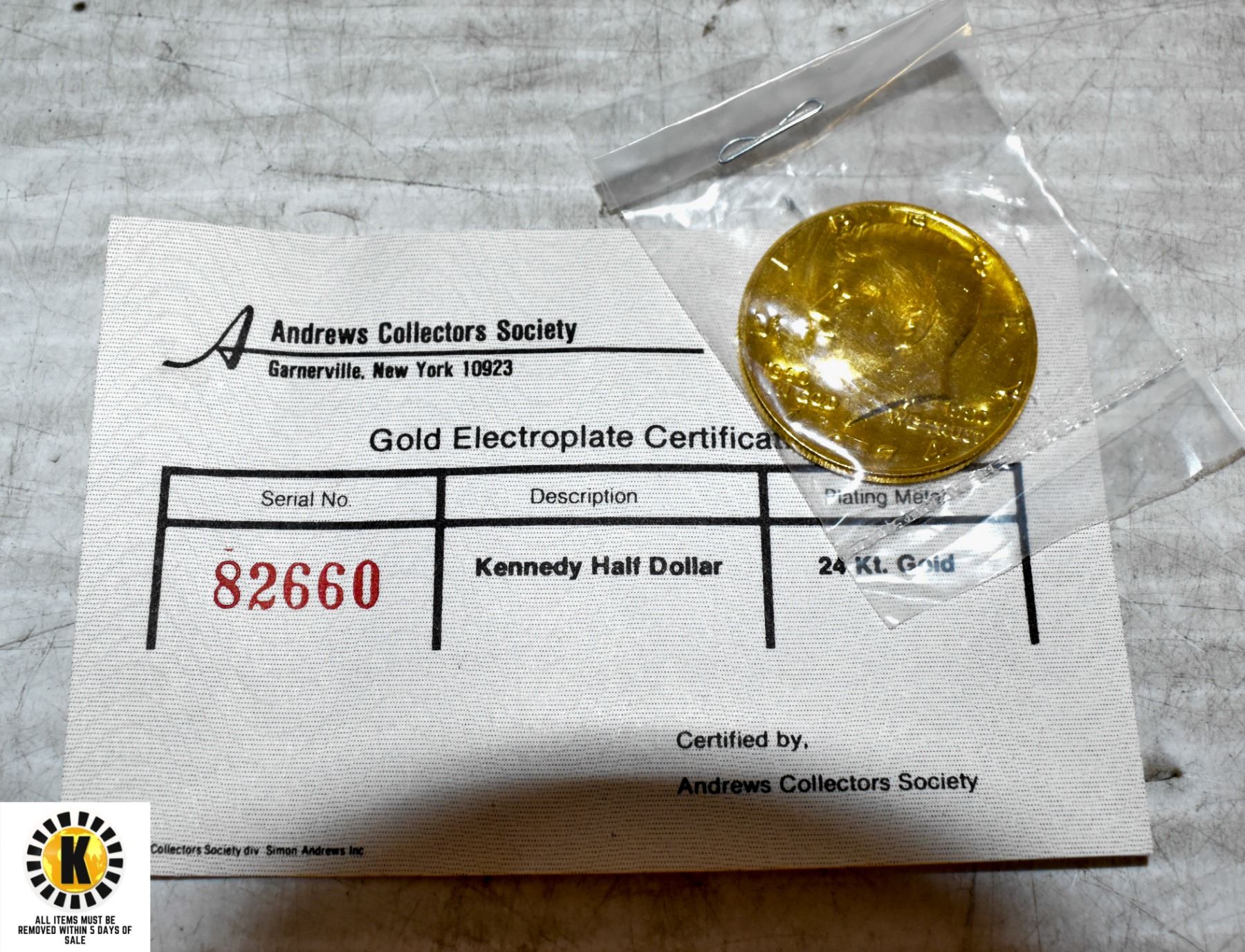 1974 CERTIFIED 24KT GOLD PLATED USA 50c COIN BU