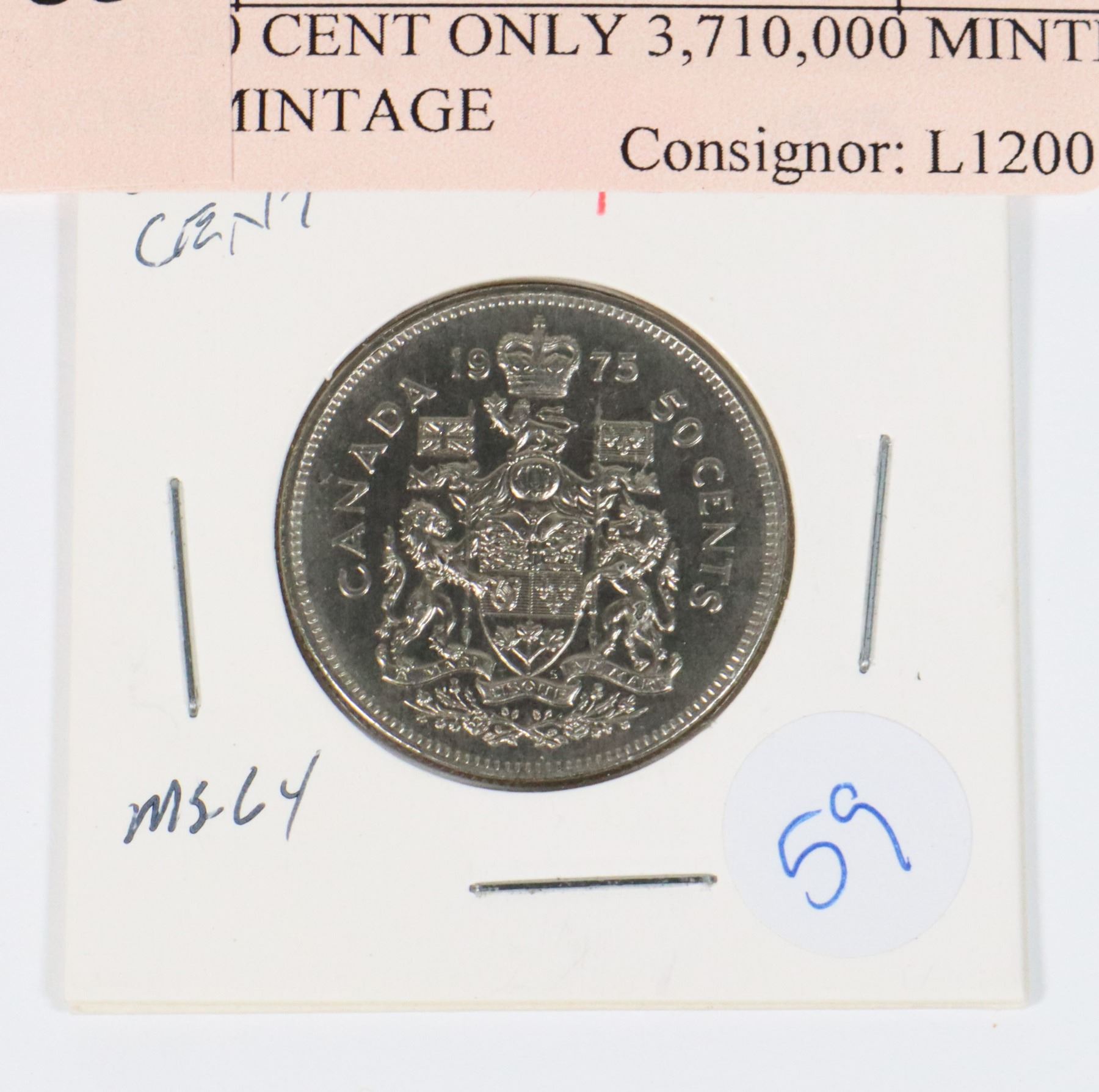 PART OF GOV'T RECALL 2020 NO LONGER CIRCULATING COINAGE. 1975 50 cent piece only : 3,710,000 Minted many now turned into Gov't of Canada for Melt Look Closely at the details in the coin
