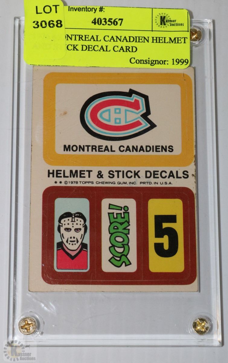 1976 MONTREAL CANADIEN HELMET AND STICK DECAL CARD