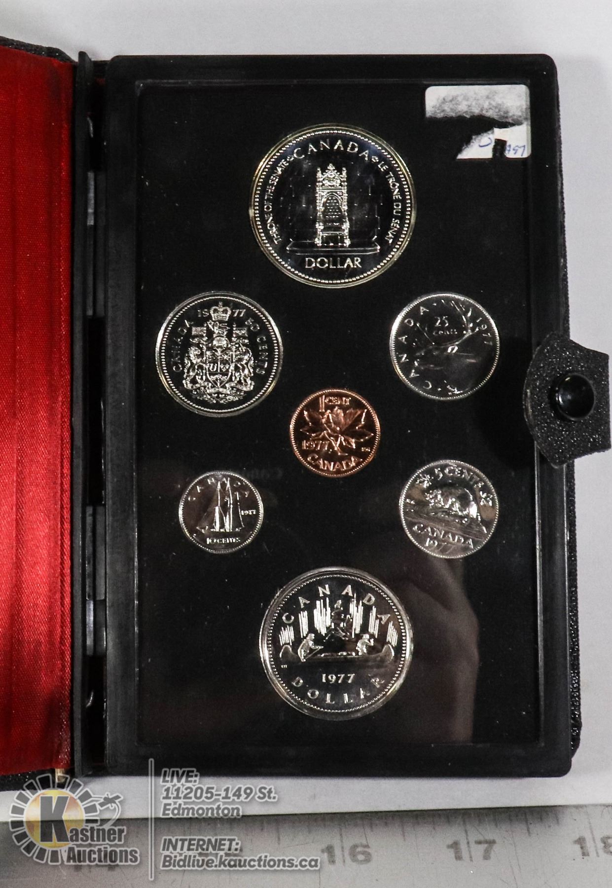 1977 DOUBLE STRUCK SET OF CANADIAN COINAGE. THRONE OF THE SENATE (QUEEN'S SILVER JUBILEE) SPECIMEN SILVER DOLLAR COIN