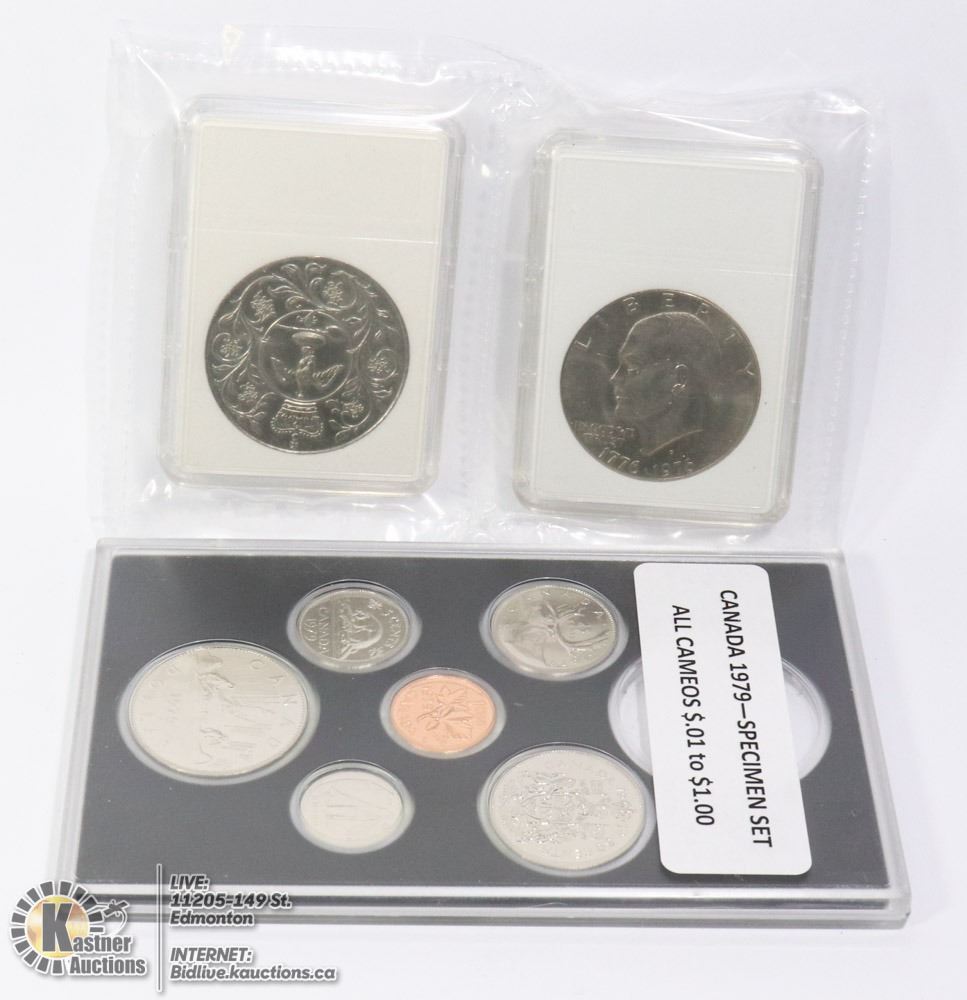 ALL PIECES ARE PROOF STRIKES $.01 TO $1, USA $1 IS 1976 AND 2ND COIN IS 1977 QE II SILVER JUBILEE COMMEMORATIVE