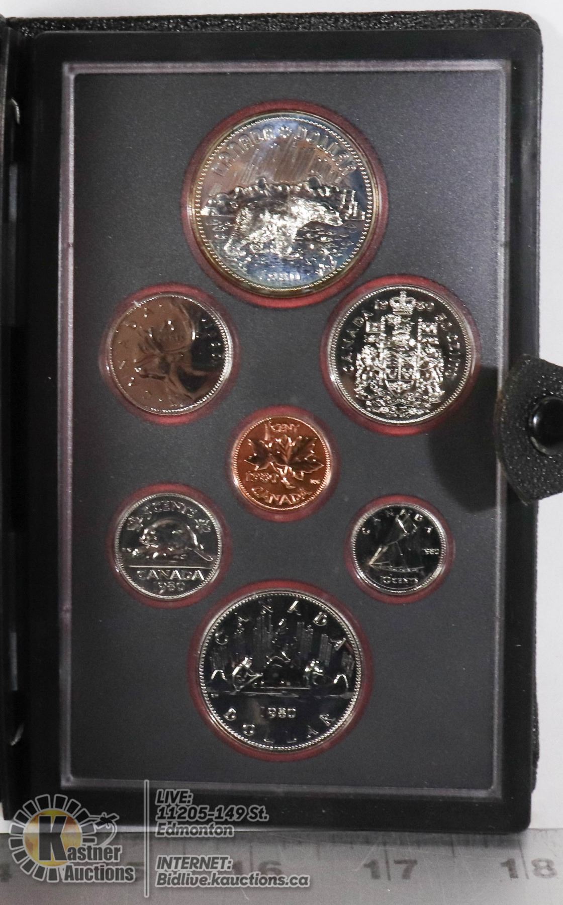 1980 PROOF SET OF CANADIAN COINAGE. THE SPECIMEN SILVER DOLLAR MARKS THE CENTENARY OF THE TRANSFER OF THE ARCTIC ISLANDS FROM THE BRITISH GOVERNMENT TO THE GOVERNMENT OF THE DOMINION OF CANADA.