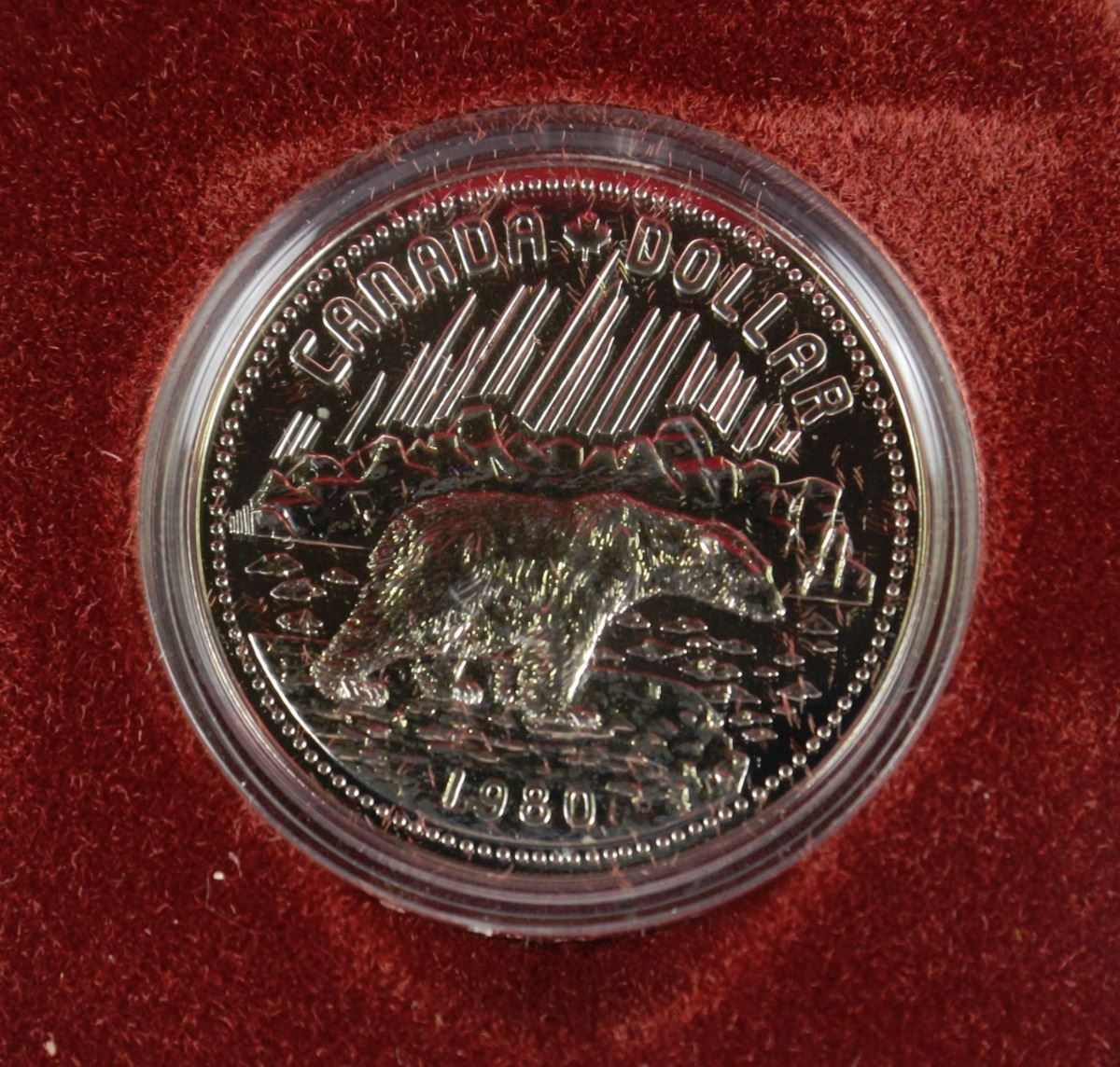 1980 POLAR BEAR CASED PROOF SILVER ONE DOLLAR