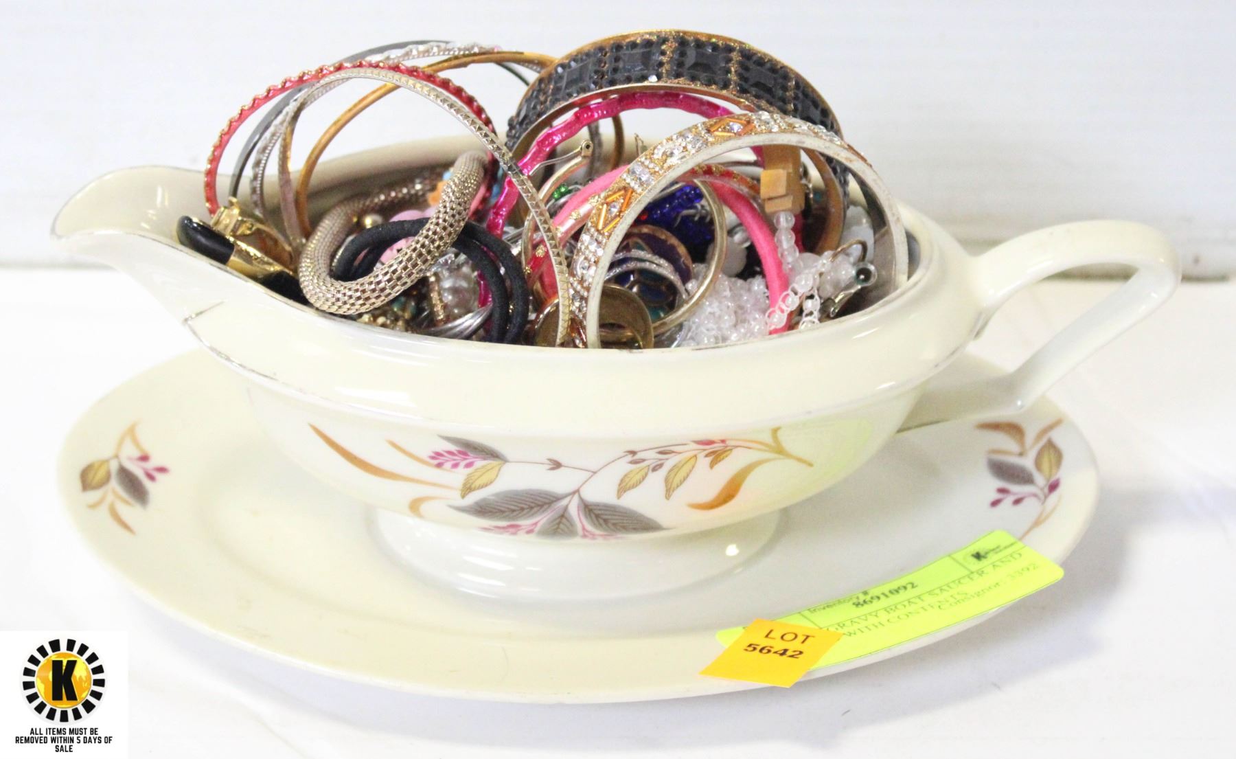 1980?S GRAVY BOAT SAUCER AND FILLED WITH CONTENTS