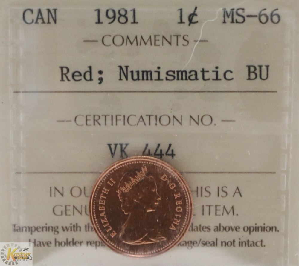 1981 CANADIAN QEII 1 CENT CERT ICCS MS66 RED