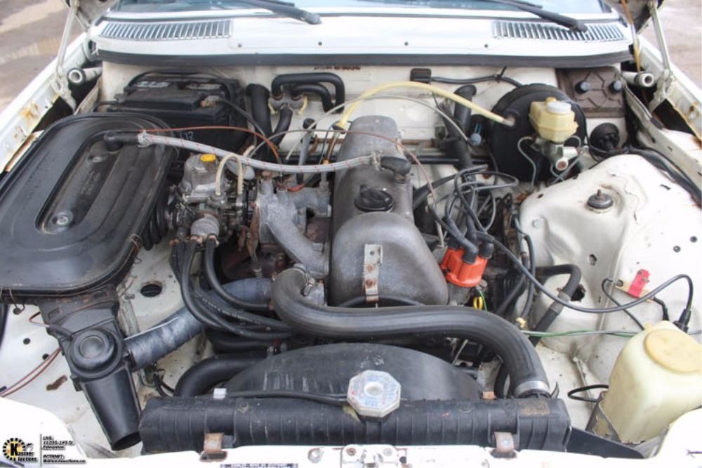 VIN: 12304312005127 KM: 113,886KM Engine: 2.4L Color: WHITE 113,886KM, TRUE MILAGE UNKNOWN, CARBORATED ENGINE, FM/AM RADIO, DISC BRAKES, FABRIC SEATING, AUTOMATIC, 2 DOORS, 4 EXTRA TIRES & RIMS, UPHOLSTERY NEEDS ATTENTION, NO GAS PEDAL COVER KEYS ARE ON TAG #55ALL BIDS SUBJECT TO BANK, BAILIFF, OR OWNER APPROVAL