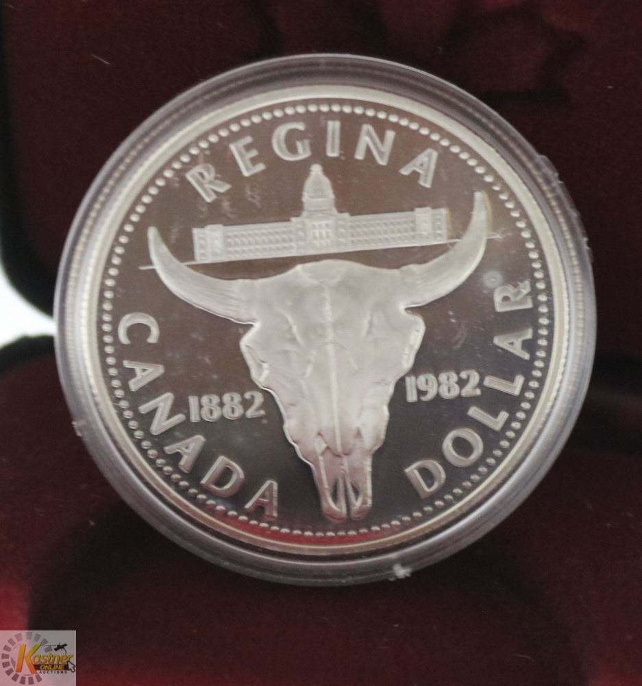 1982 CANADA REGINA COMMEM, CASED SILVER DOLLAR