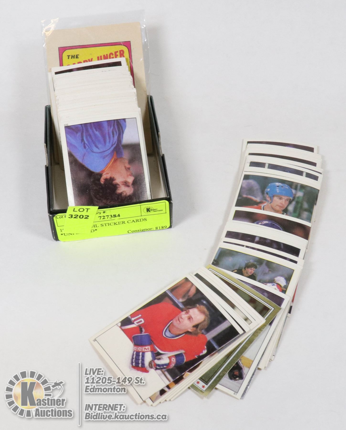 150+ UNPEELED OPC STICKER CARDS MANY NHL GREATS, AND 1 GARY UNGER STORY BOOKLET CARD. *NOT A COMPLETE SET*