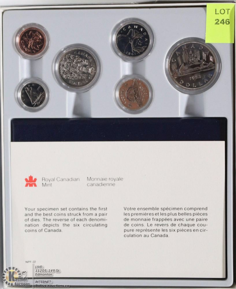1982 RCM SPECIMEN SET FIRST STRUCK FROM A SET OF DIES , IN CASES AND IN BLUE LEATHER PRESENTATION CASE WITH COA