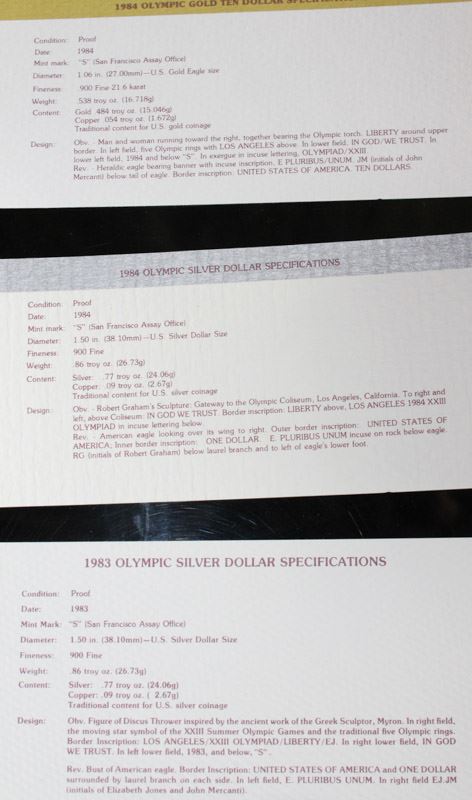 1984 $10 GOLD COIN .900 FINE 21.6KT .538 TROY OUNCE, 1984 $1 DOLLAR COIN .900 FINE .86 TROY OUNCE, 1983 $1 DOLLAR COIN .900 FINE .77 TROY OUNCE
