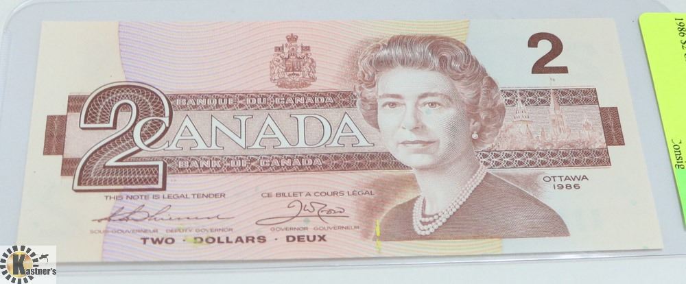1986 $2 CANADIAN BILL SERIAL #EGF3639709