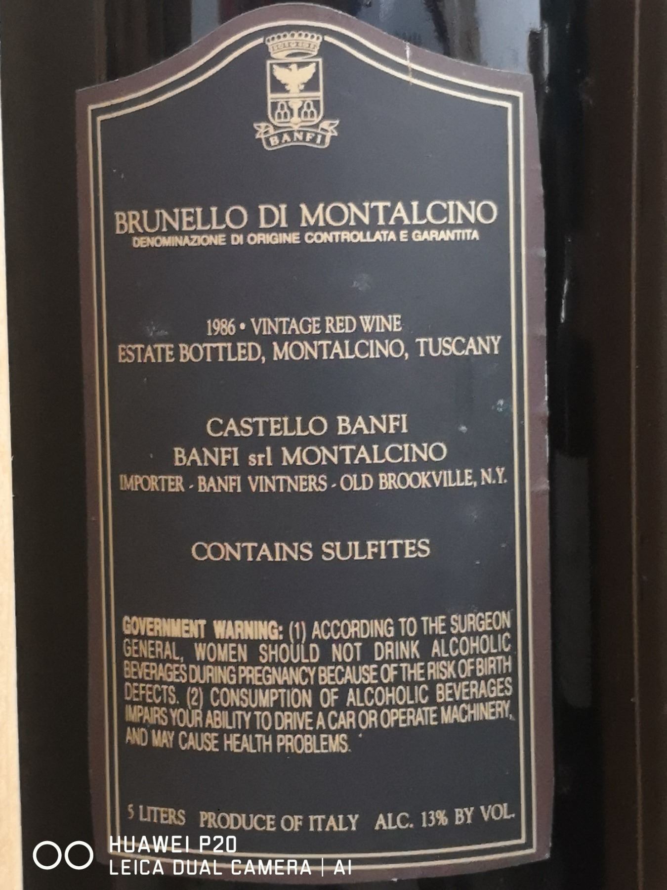 1986 BRUNELLO DI MONTALCINO VINTAGE RED. 5L