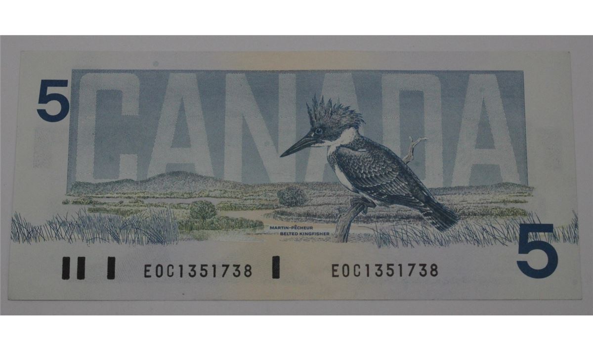 1986 CANADA $5 DOLLAR BILL NEAR MINT CONDITION