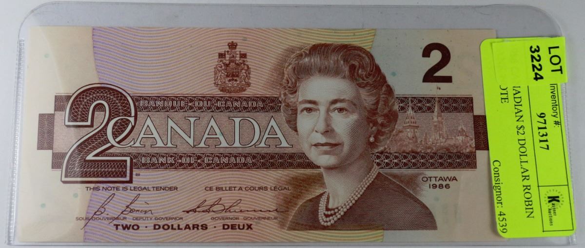1986 CANADIAN $2 DOLLAR ROBIN BANK NOTE
