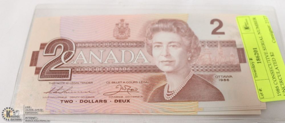 1986 CONSECUTIVE SERIAL NUMBER UNCIRCULATED $2