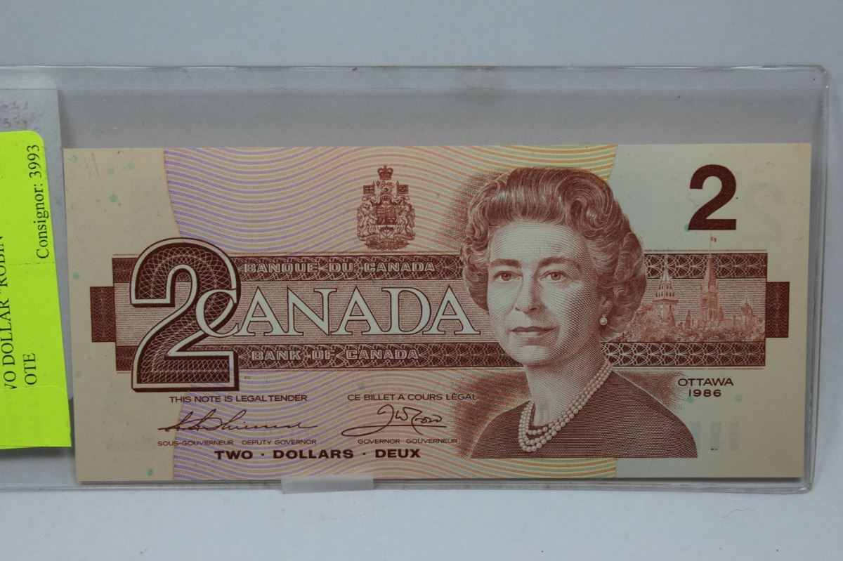 1986 TWO DOLLAR "ROBIN" BANKNOTE