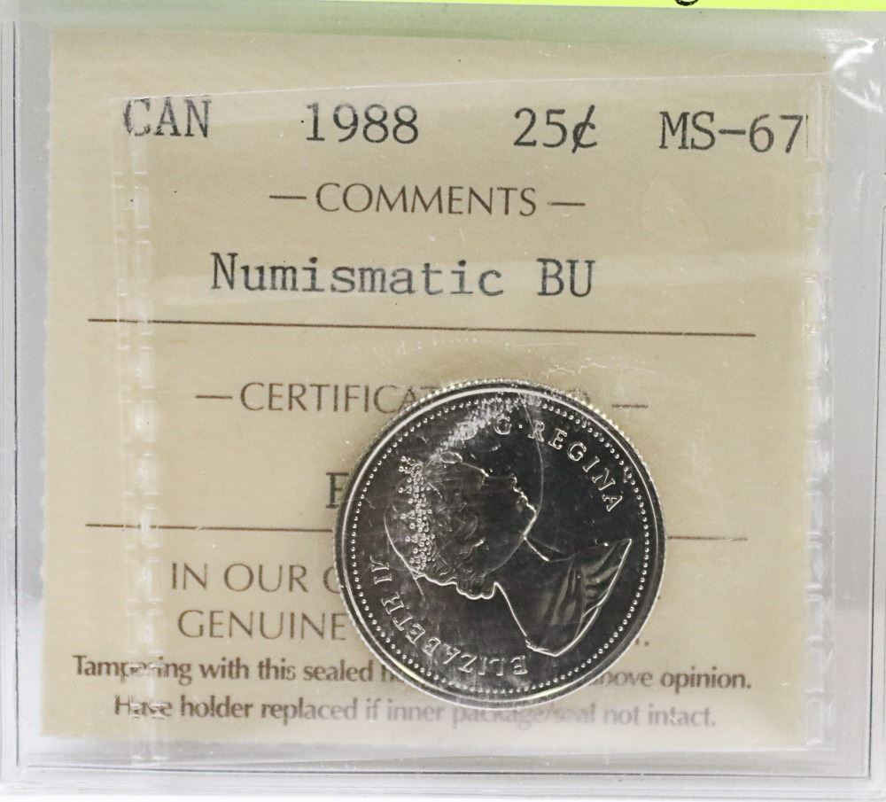 1988 CANADIAN 25 CENT COIN CERTIFIED ICCS MS 67