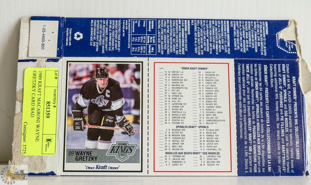 1989 KRAFT MACARONI WAYNE GRETZKY CARD BAD