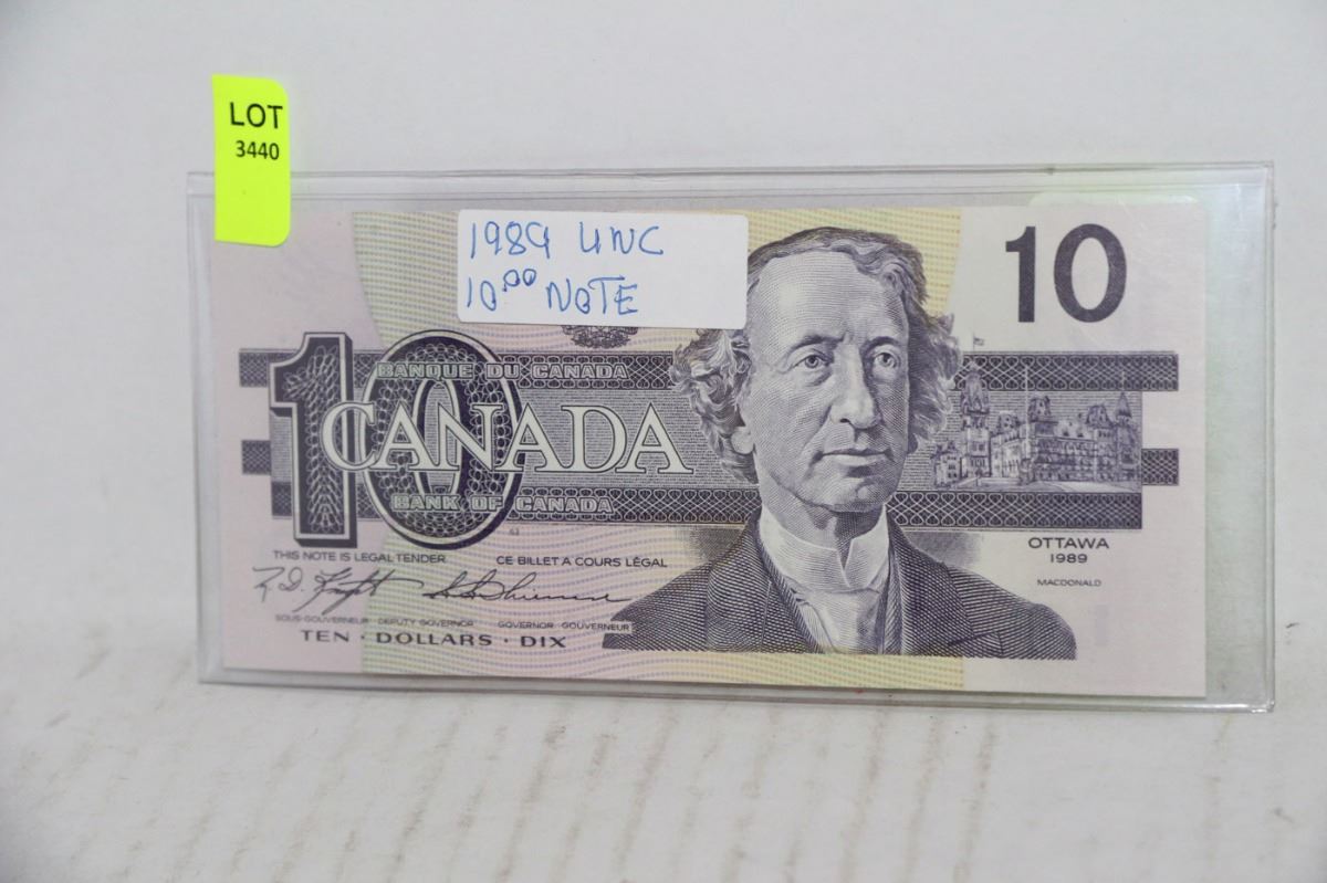 1989 UNC TEN DOLLAR BANKNOTE