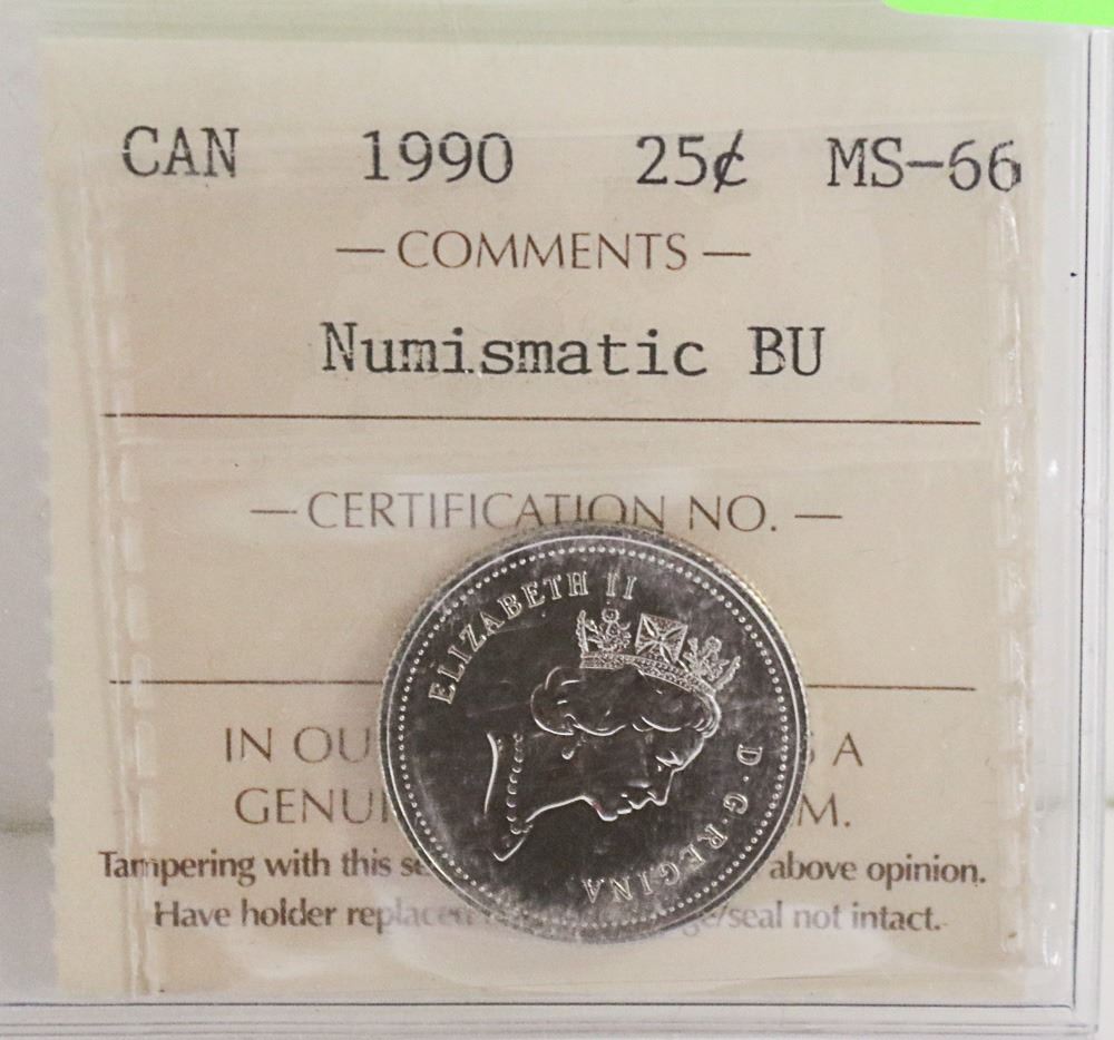 1990 CANADIAN QEII 25 CENT CERTIFIED ICCS MS-66